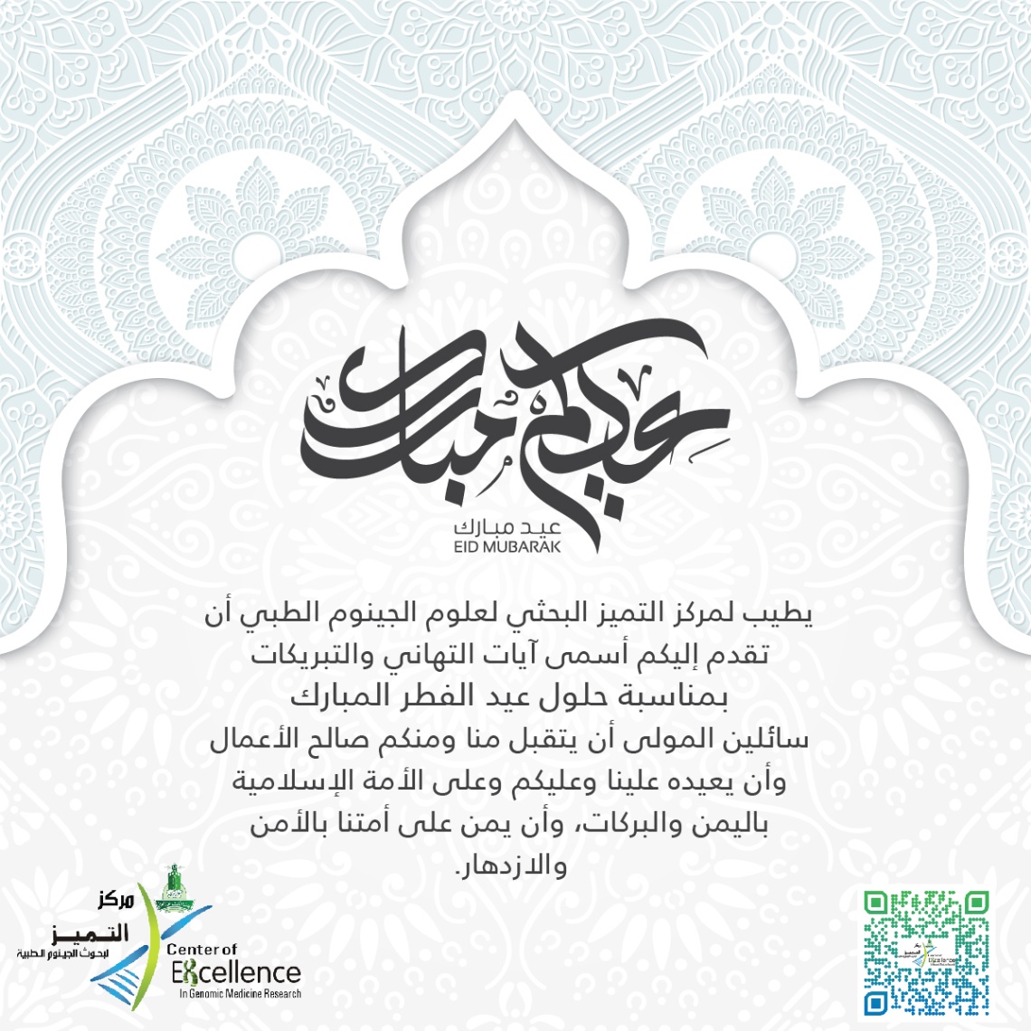 Center of Excellence in Genomic Medicine Research pleasure to congratulate you on the occasion of the Eid Al-Fiter and wish you all the best .. Read More |
